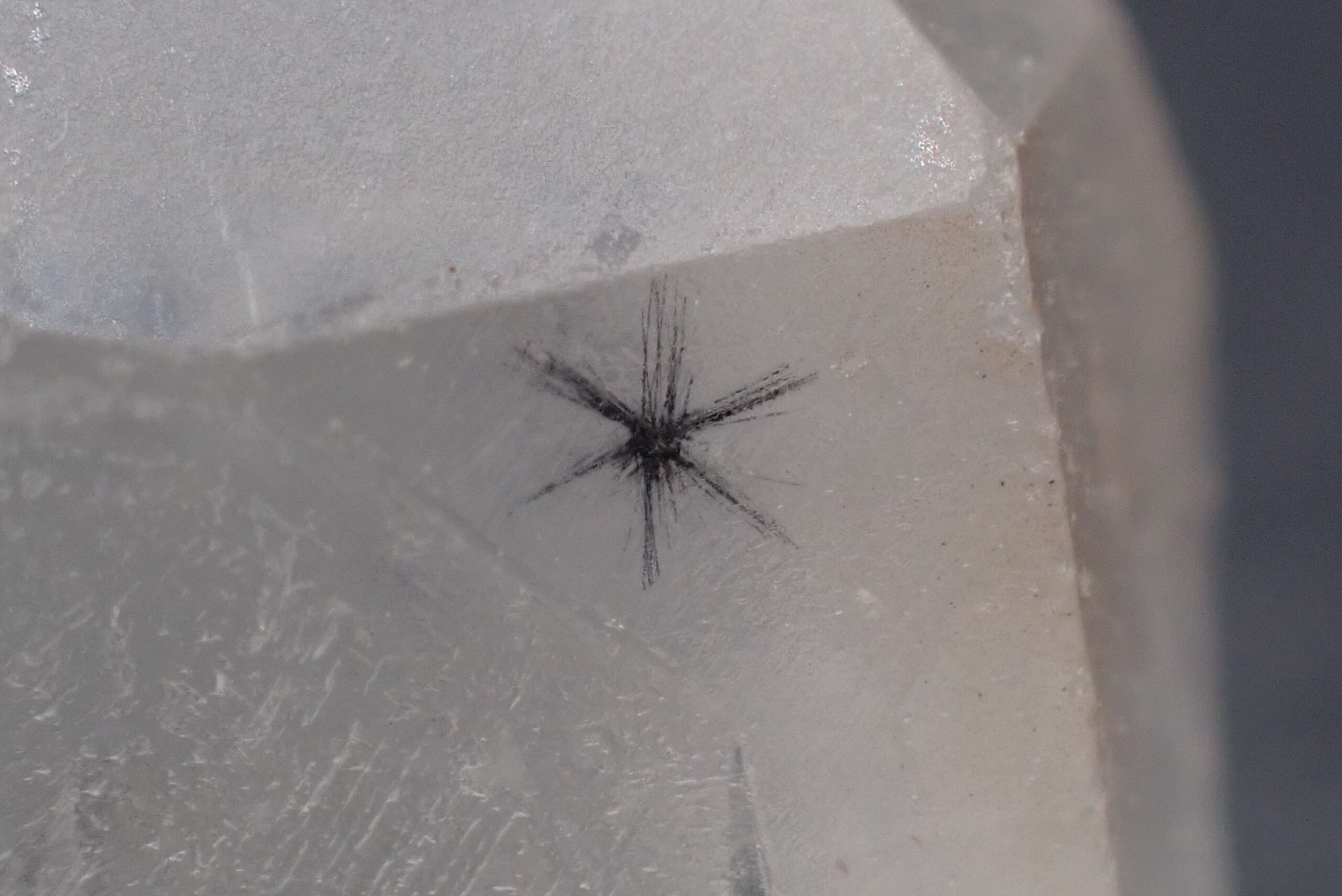 Hollandite , Cristal de Quartz avec inclusions d’Oxydes de Manganèse , Xian de Donghai , Chine . référence : holl17