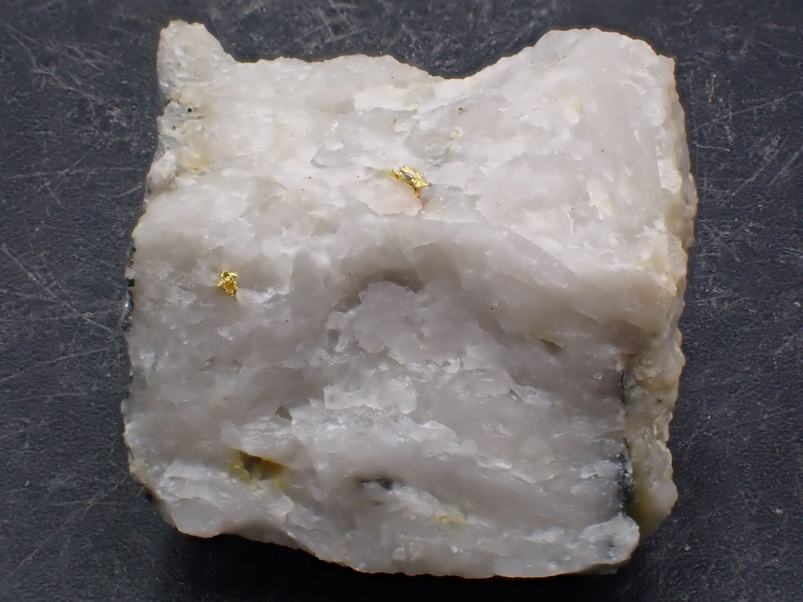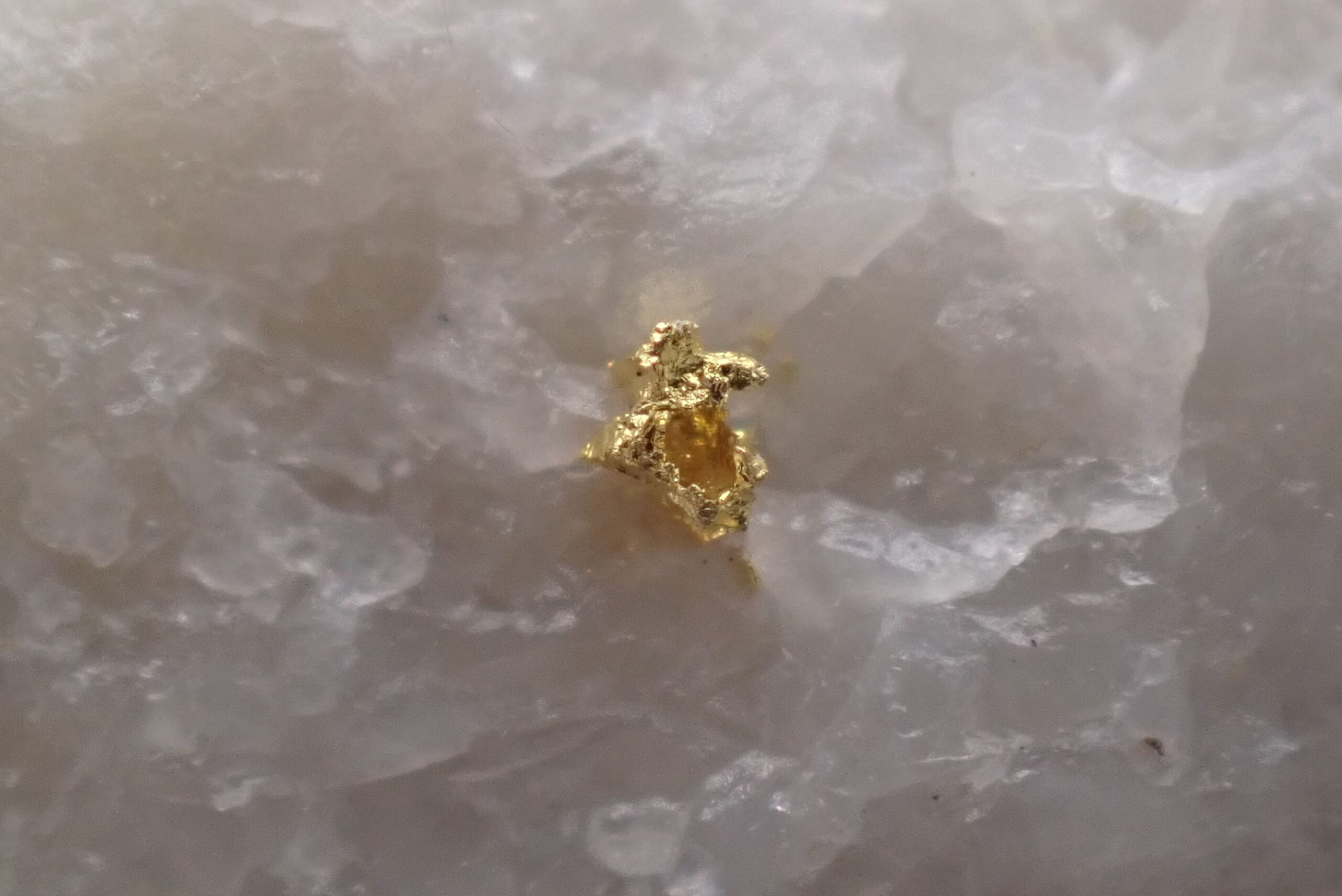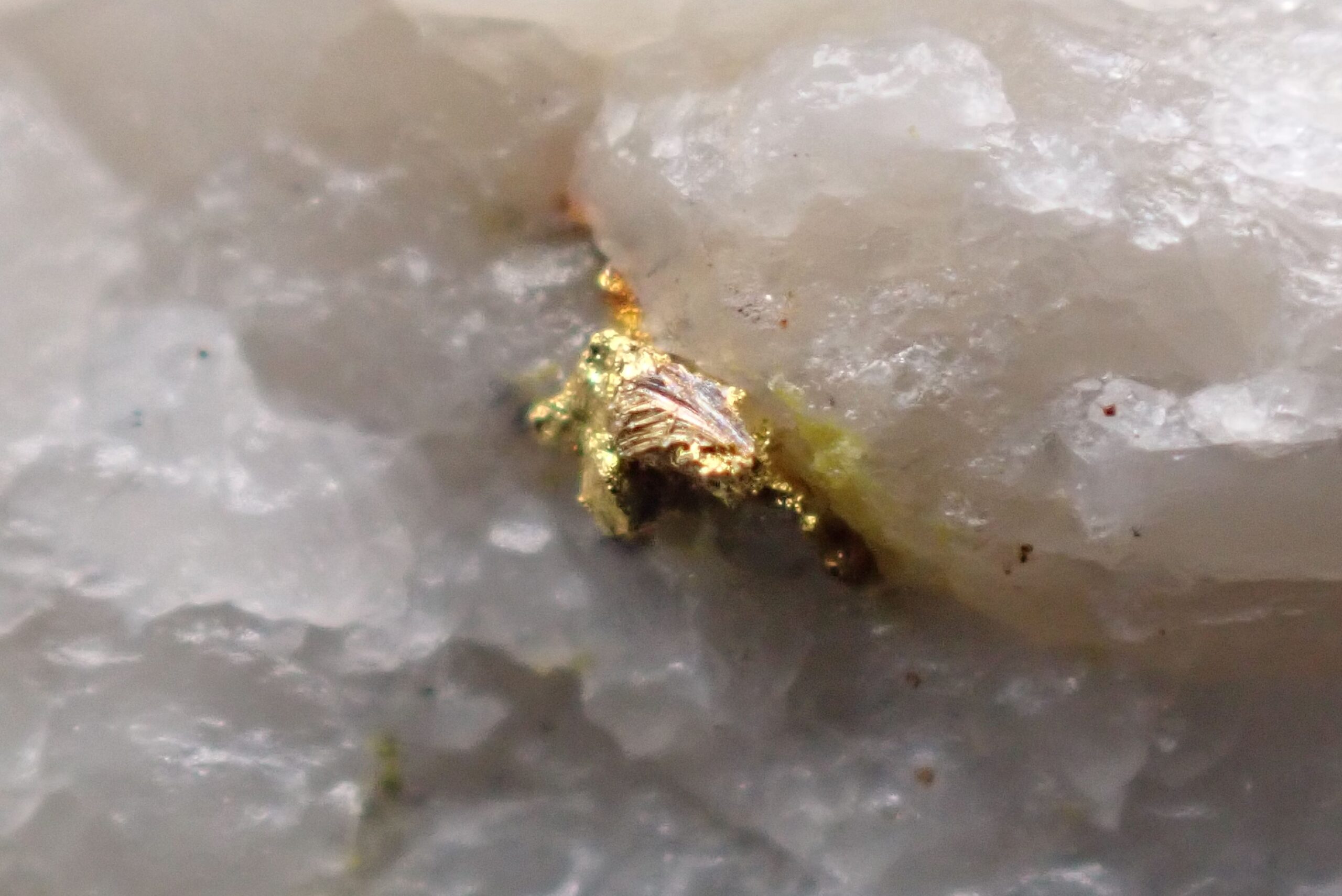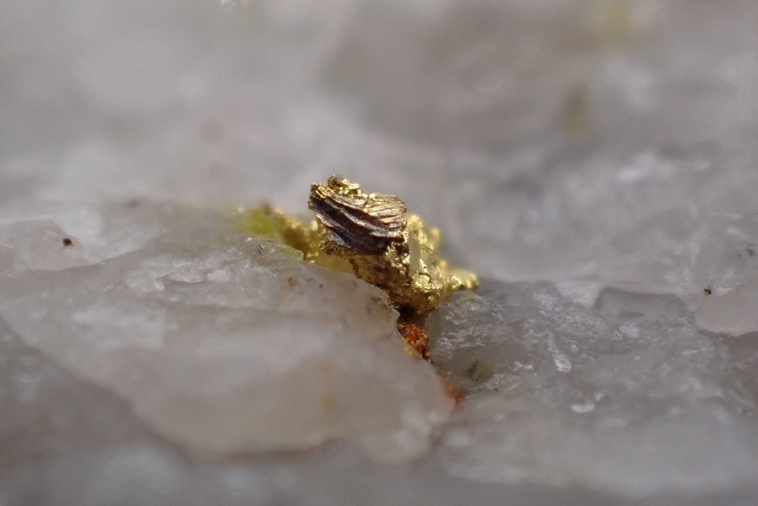 Or natif sur Quartz (2 points d’Or) Mine de Cros Gallet , le Chalard , Haute-Vienne , France . référence : orna15