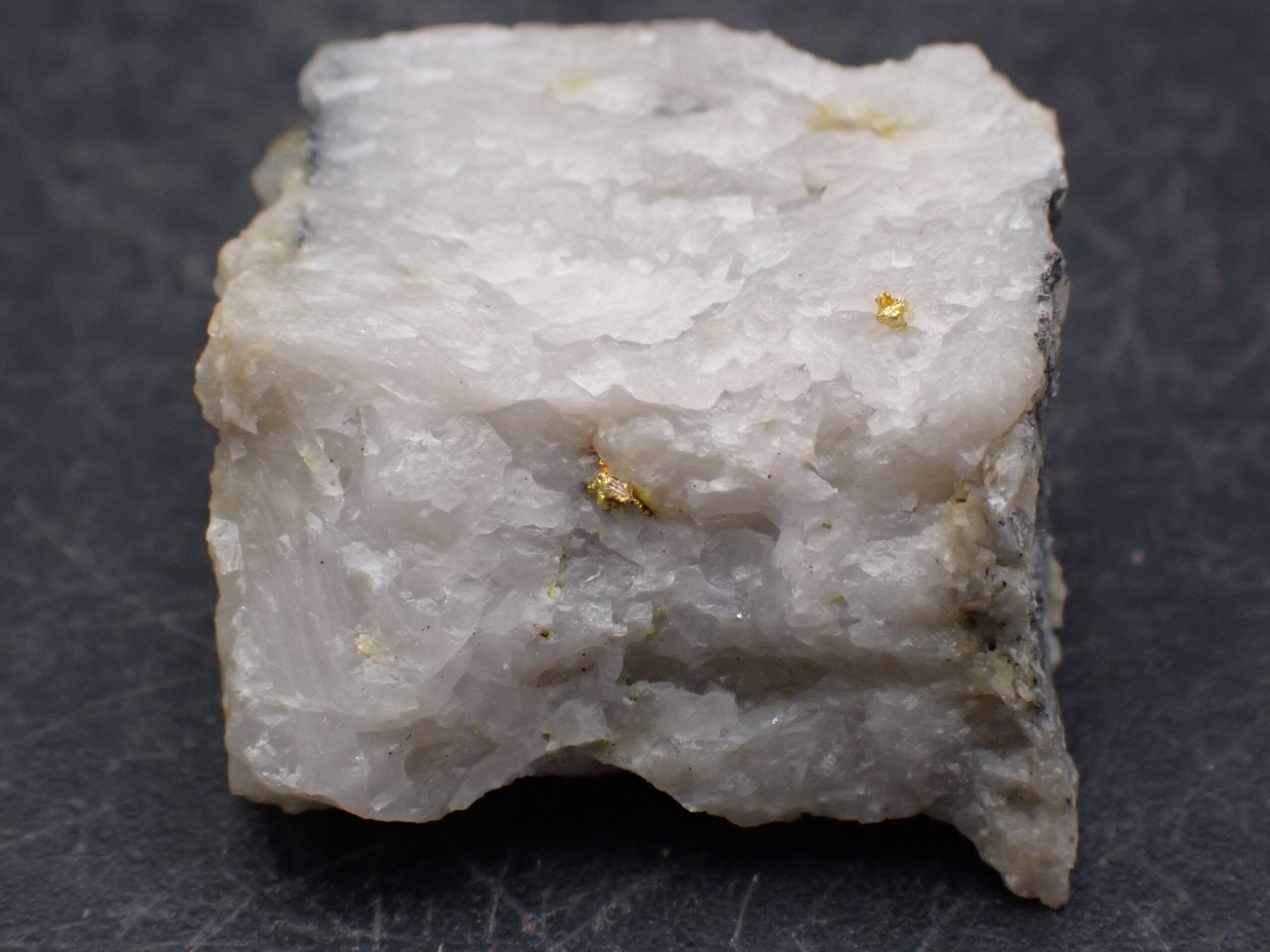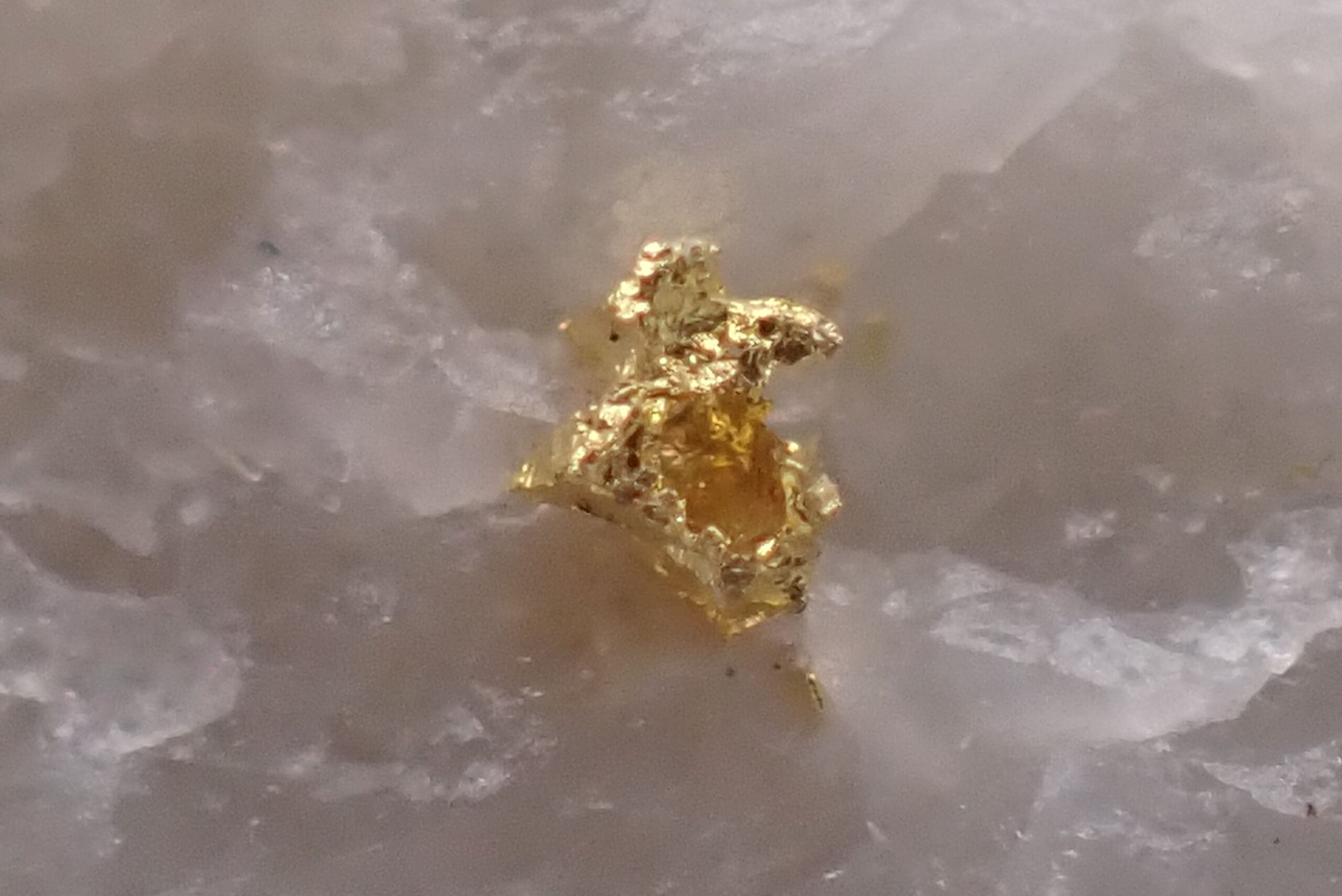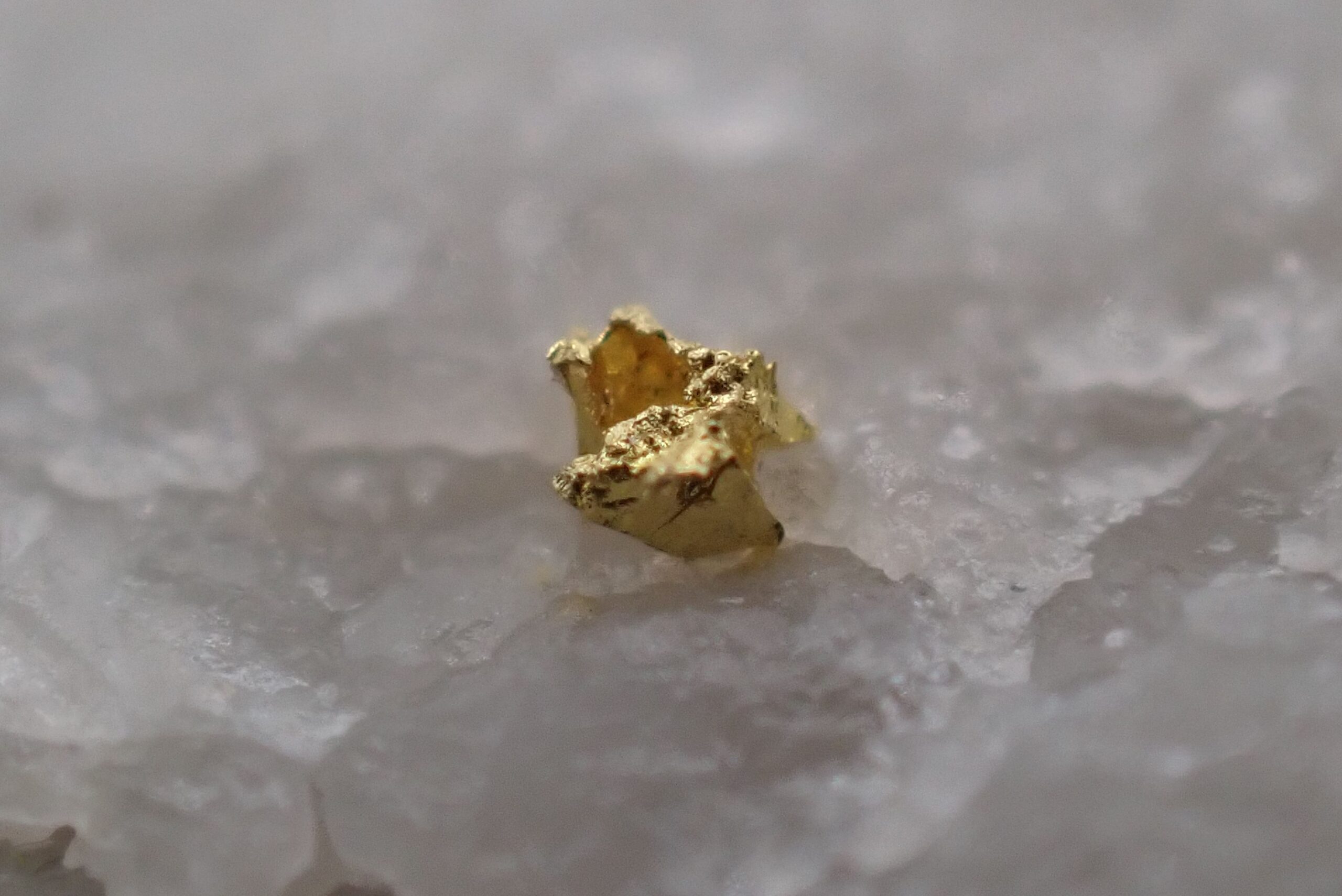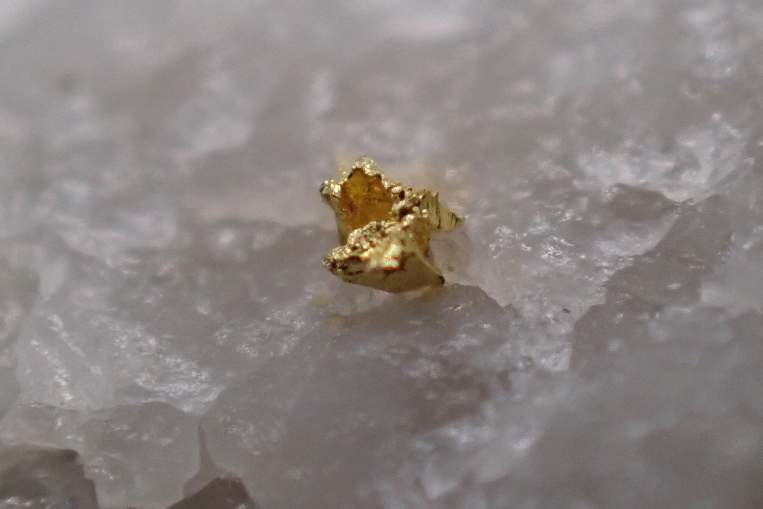 Or natif sur Quartz (2 points d’Or) Mine de Cros Gallet , le Chalard , Haute-Vienne , France . référence : orna15