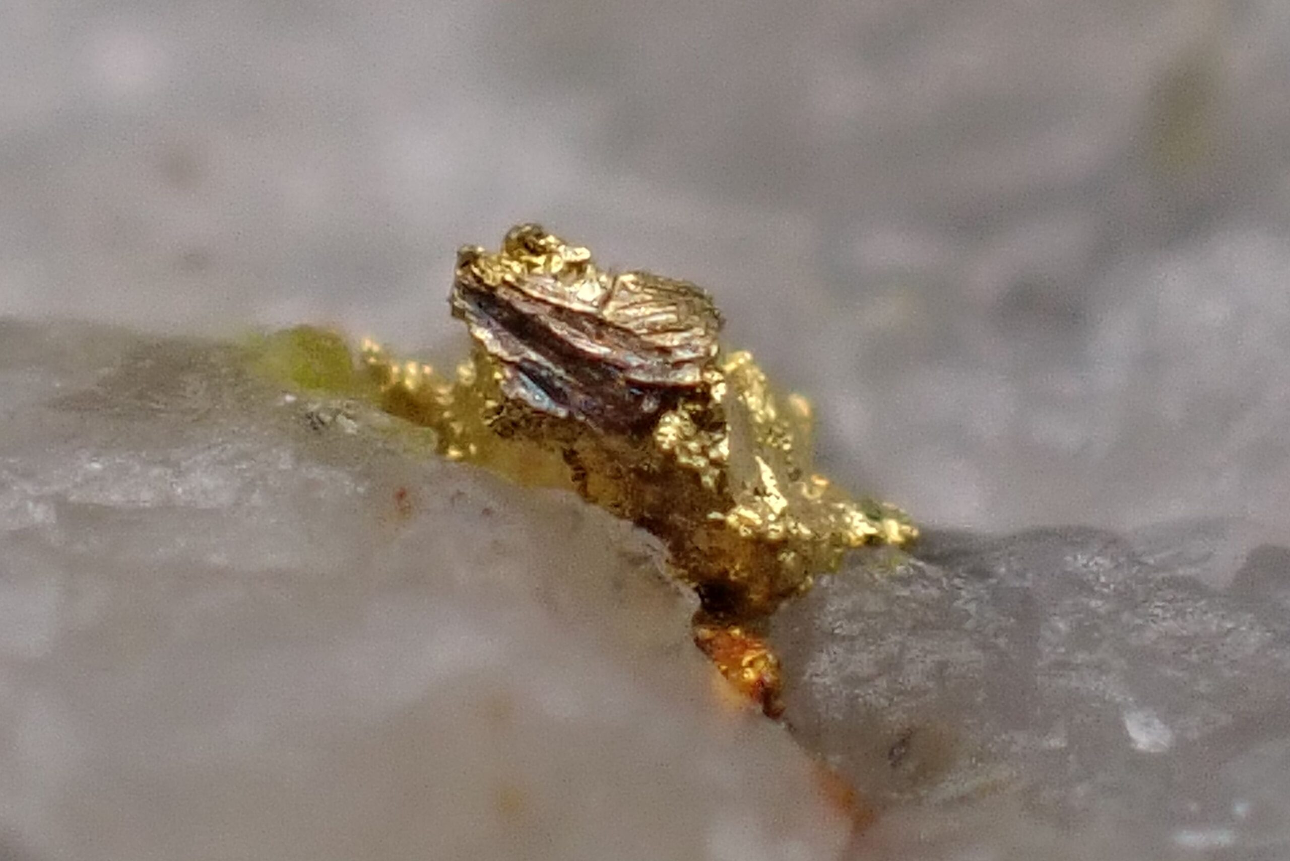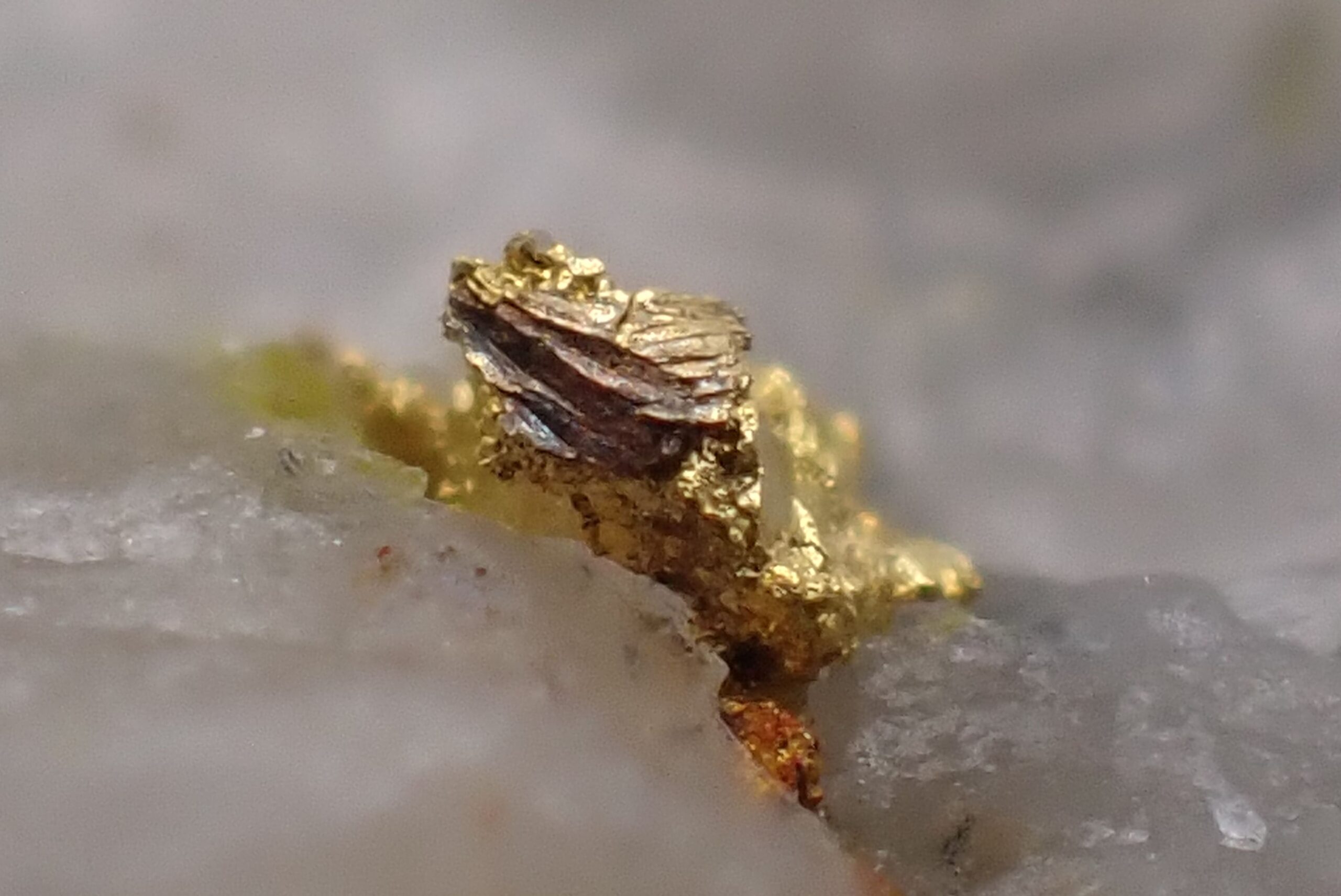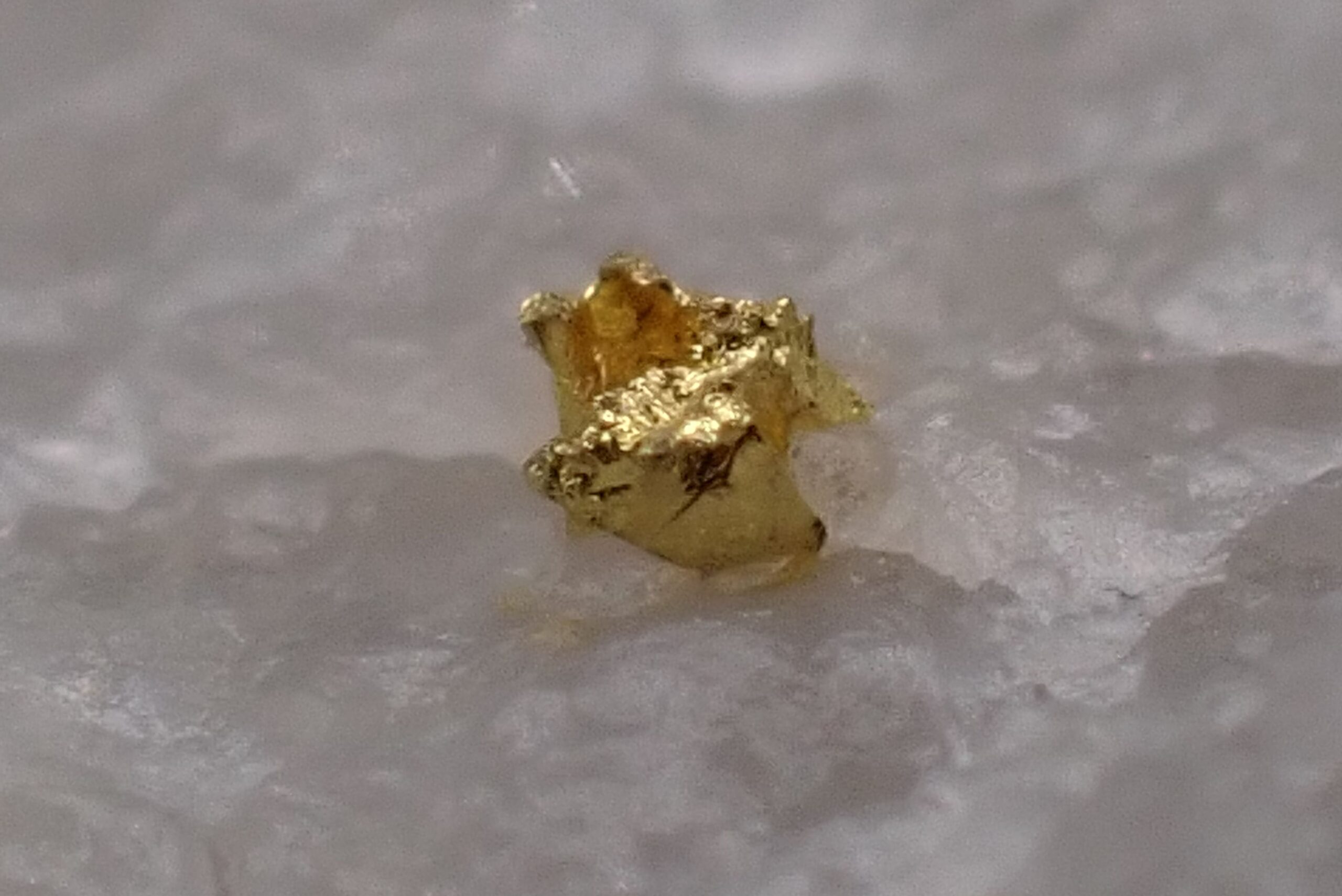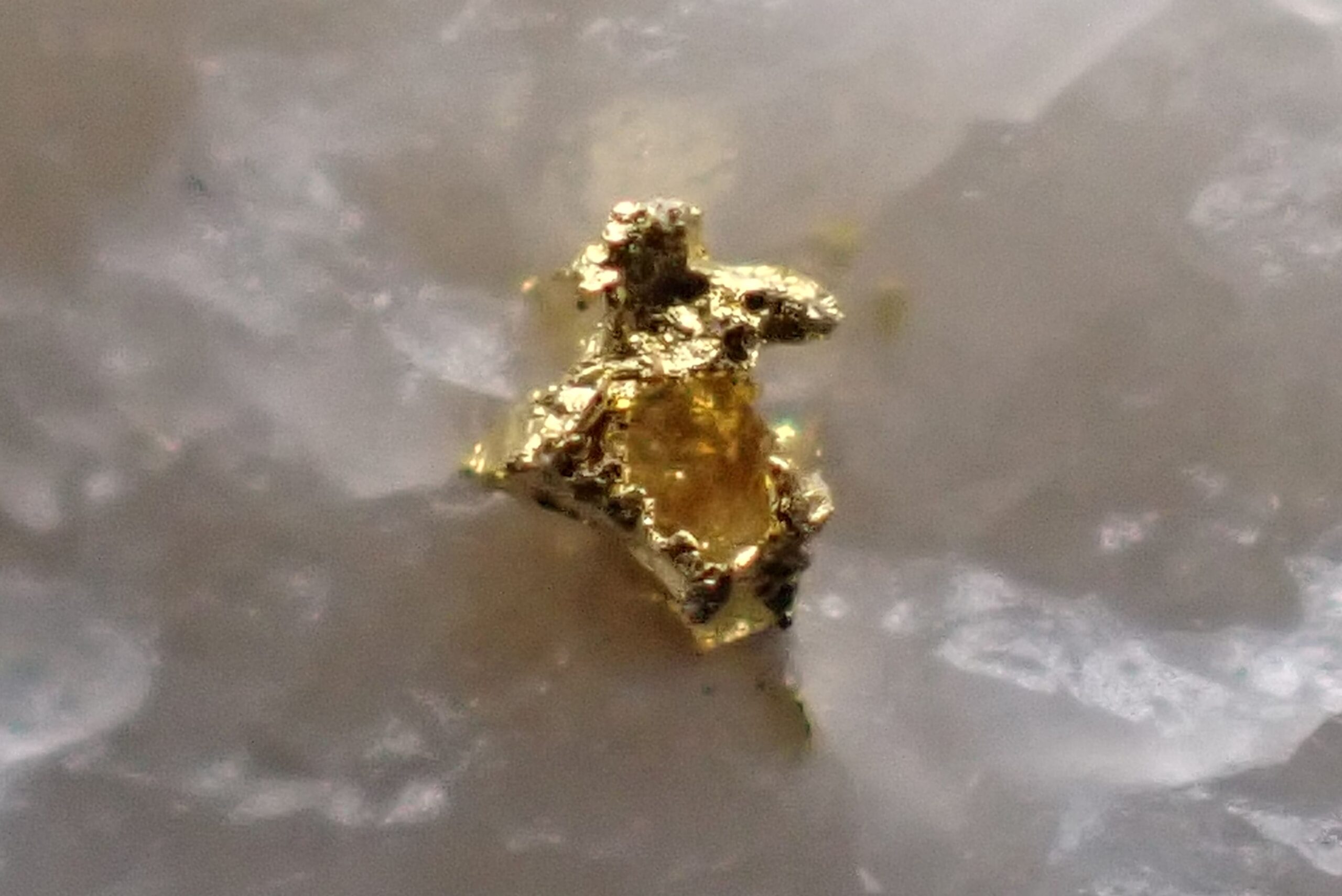 Or natif sur Quartz (2 points d’Or) Mine de Cros Gallet , le Chalard , Haute-Vienne , France . référence : orna15