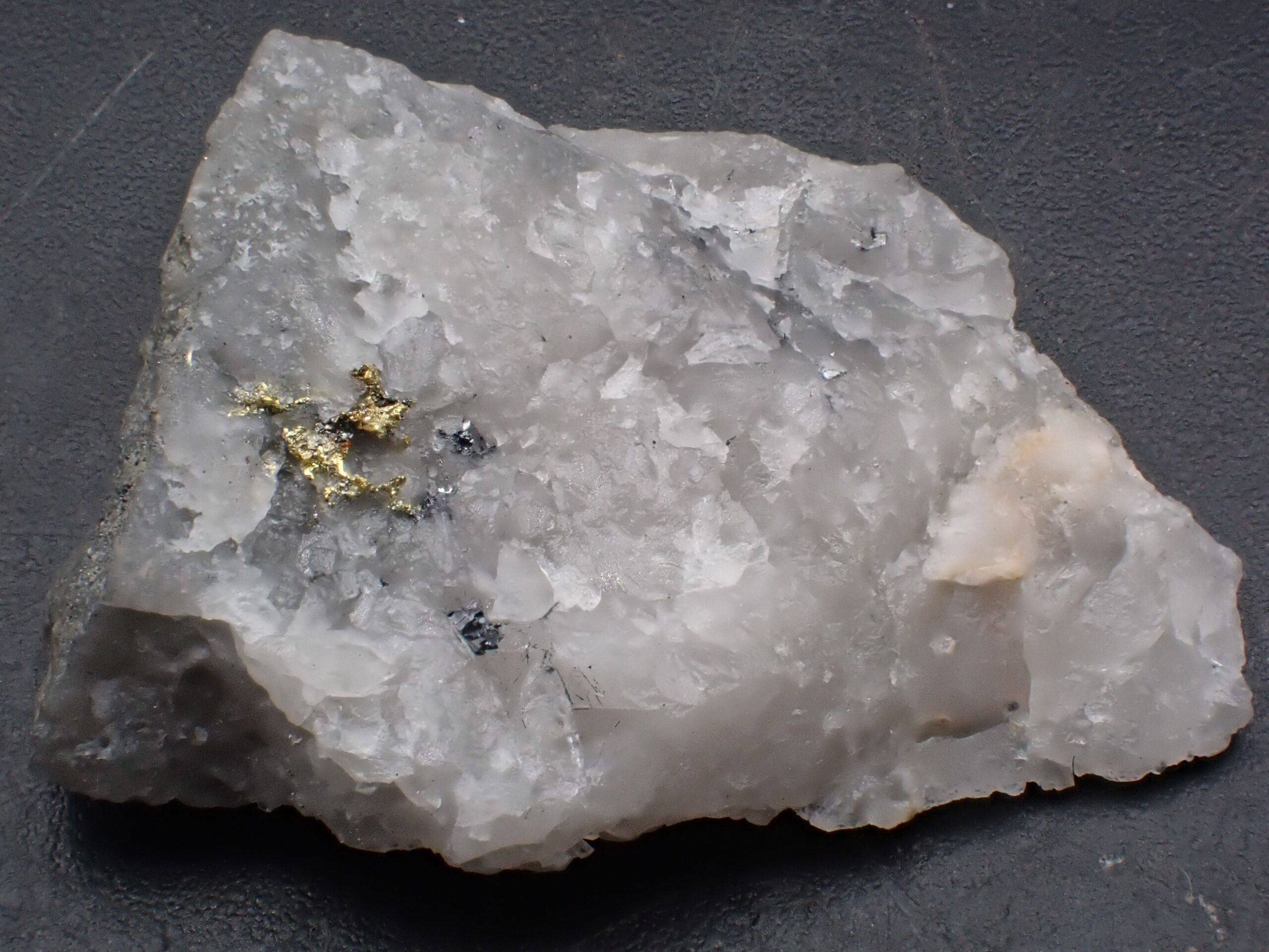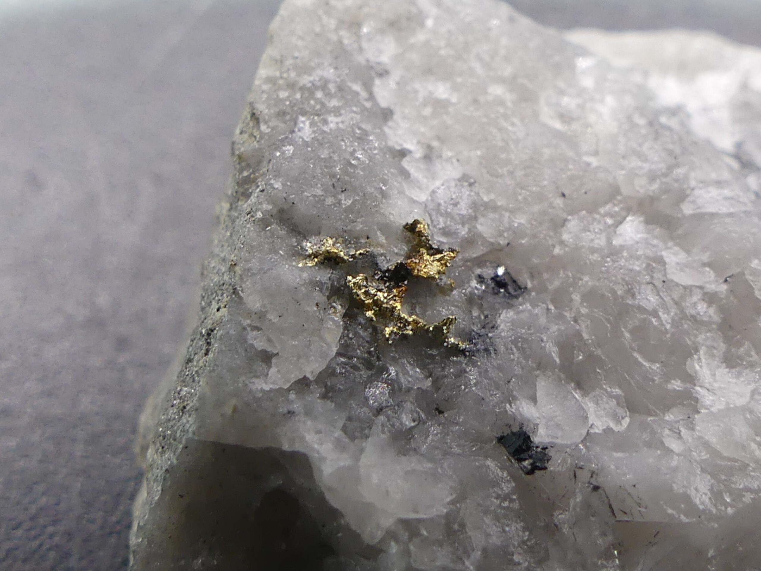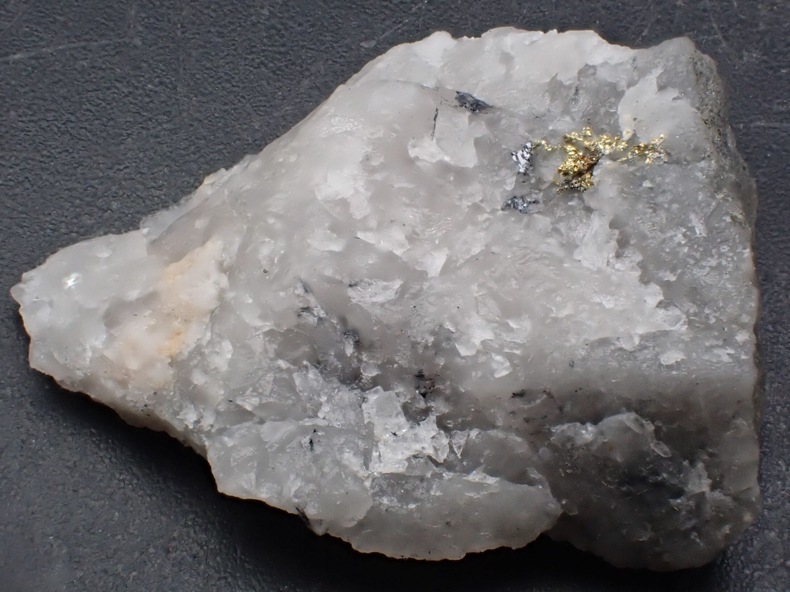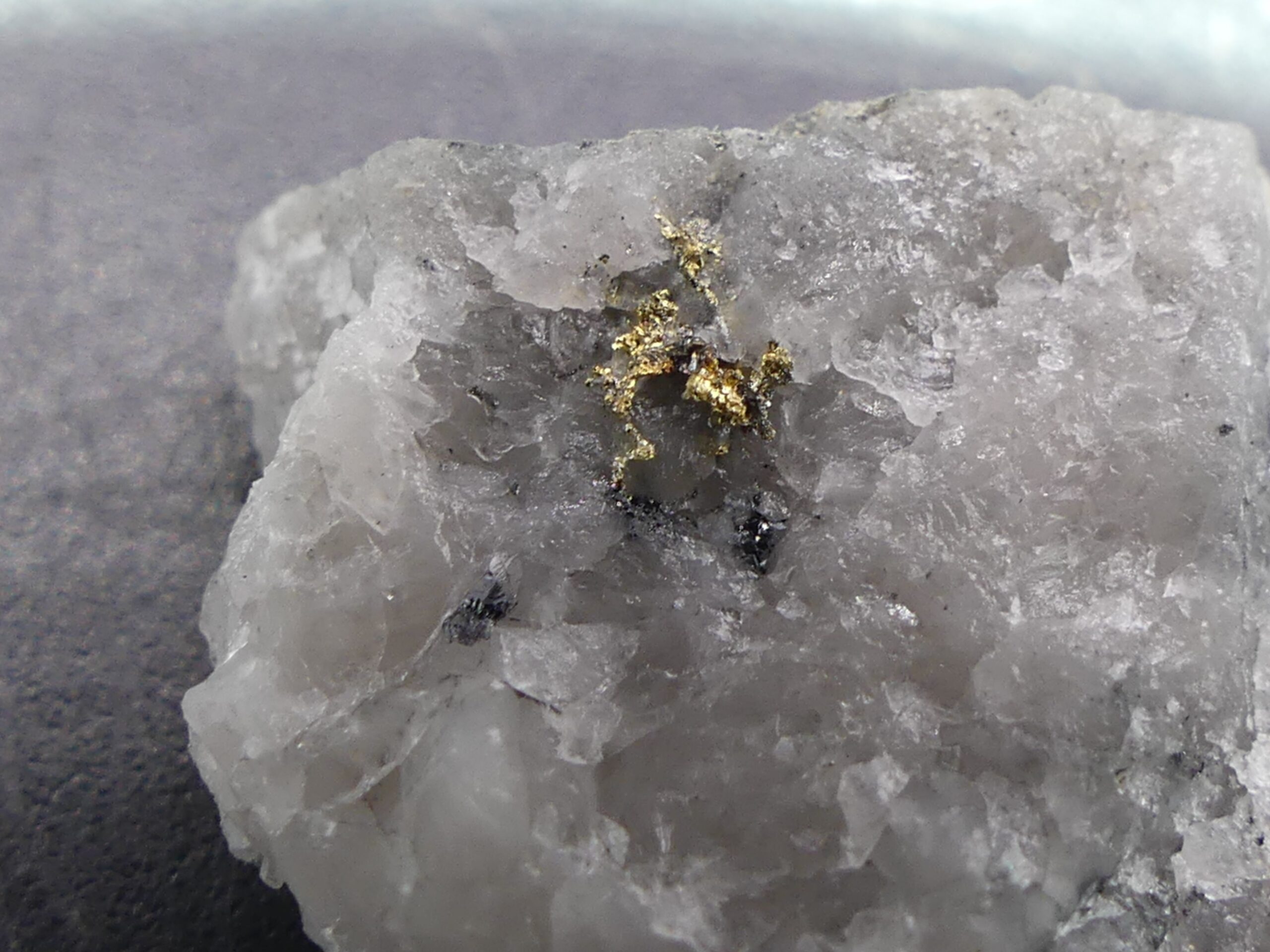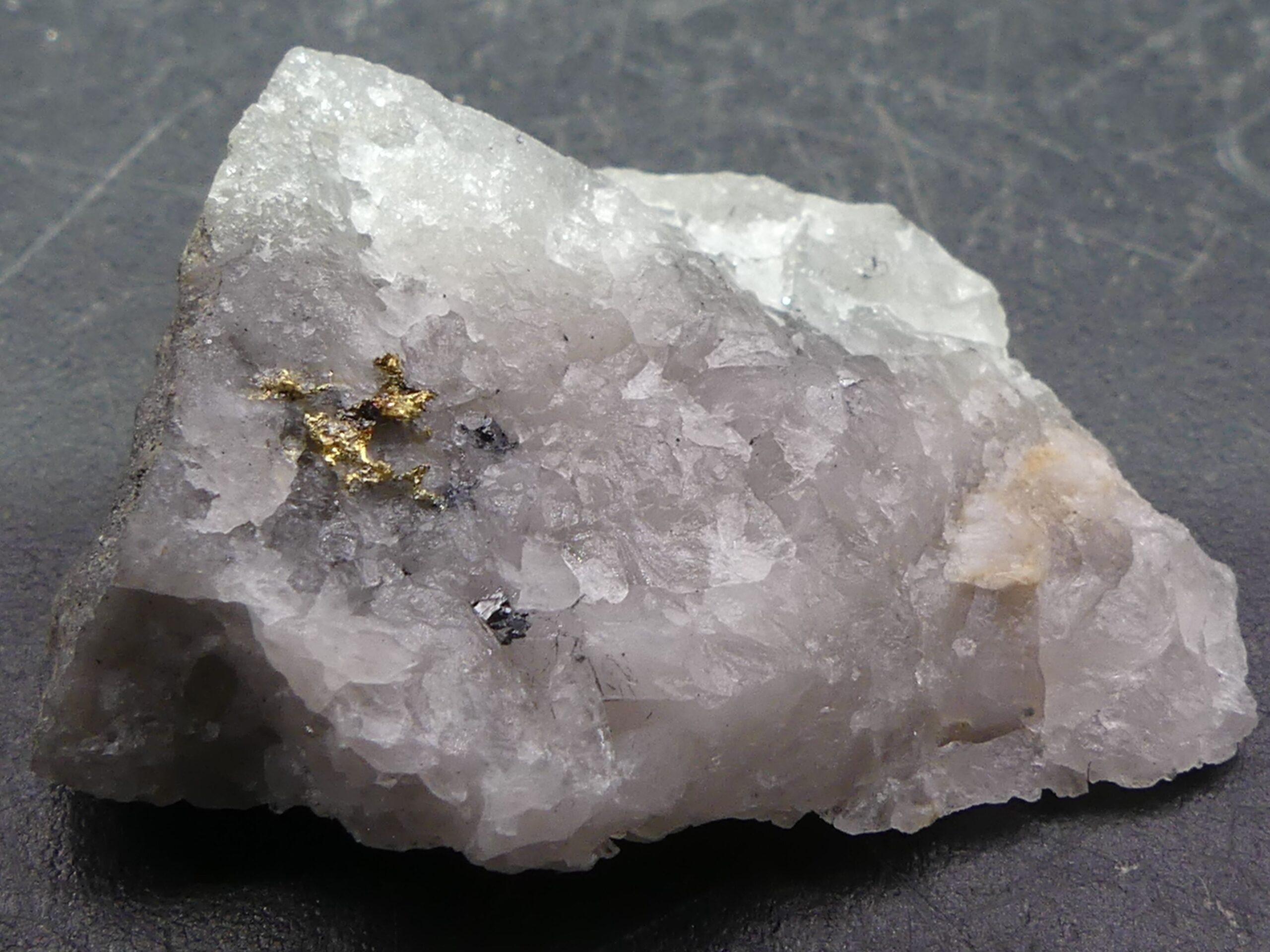 Or natif sur Quartz , Mine de Cros Gallet , Le Chalard , Haute-Vienne , France . référence : orna15 VENDU