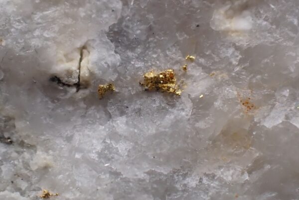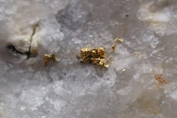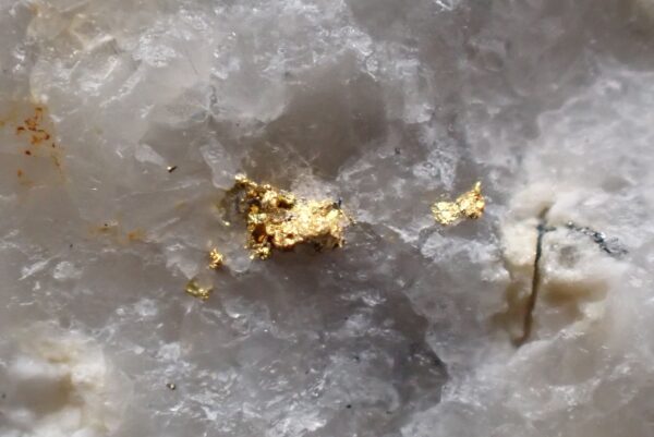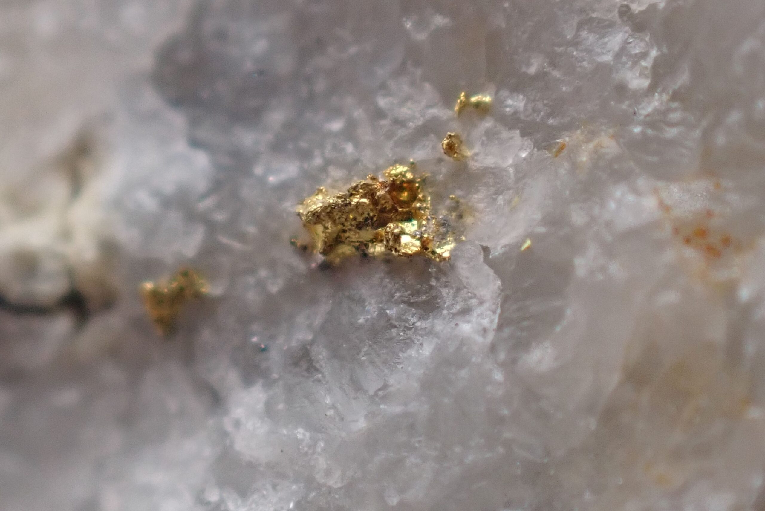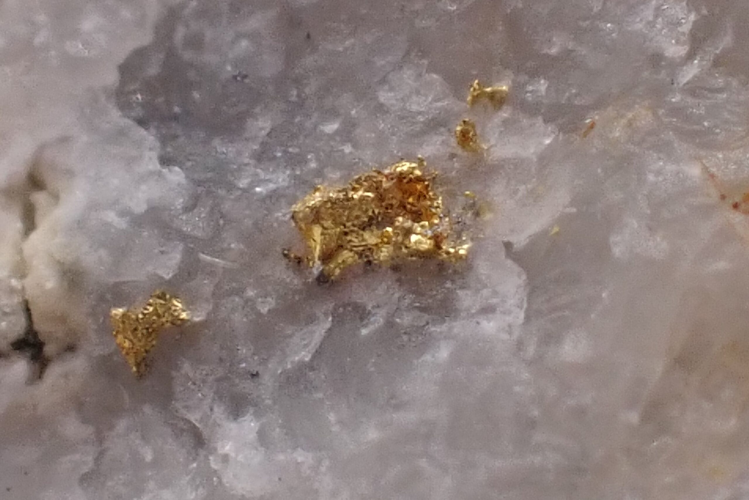 Or natif sur Quartz , Mine de Cros Gallet , Le Chalard , Haute-Vienne , France . référence : orna16 VENDU