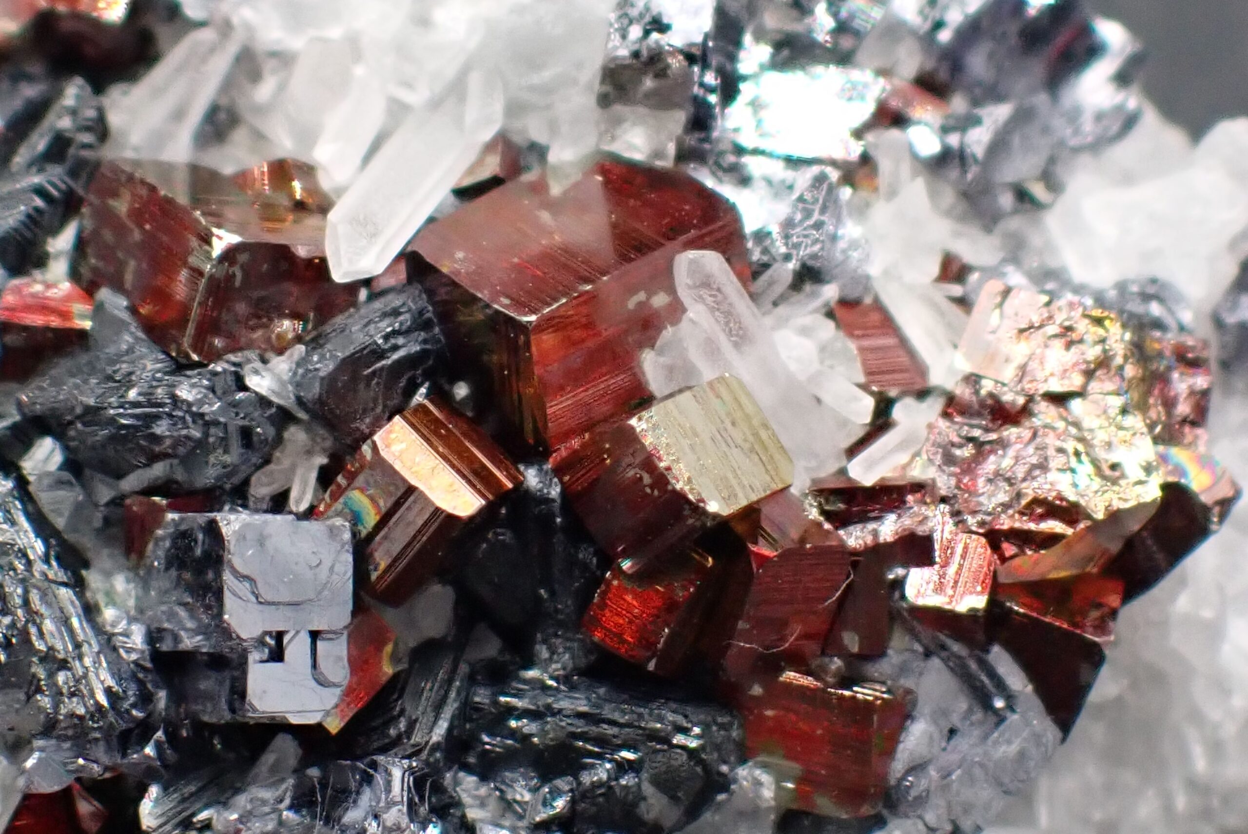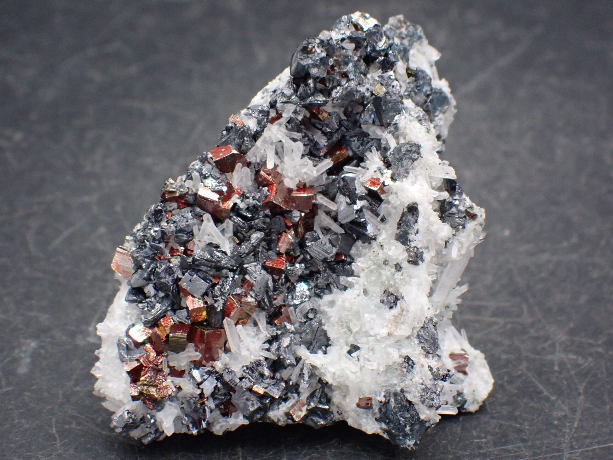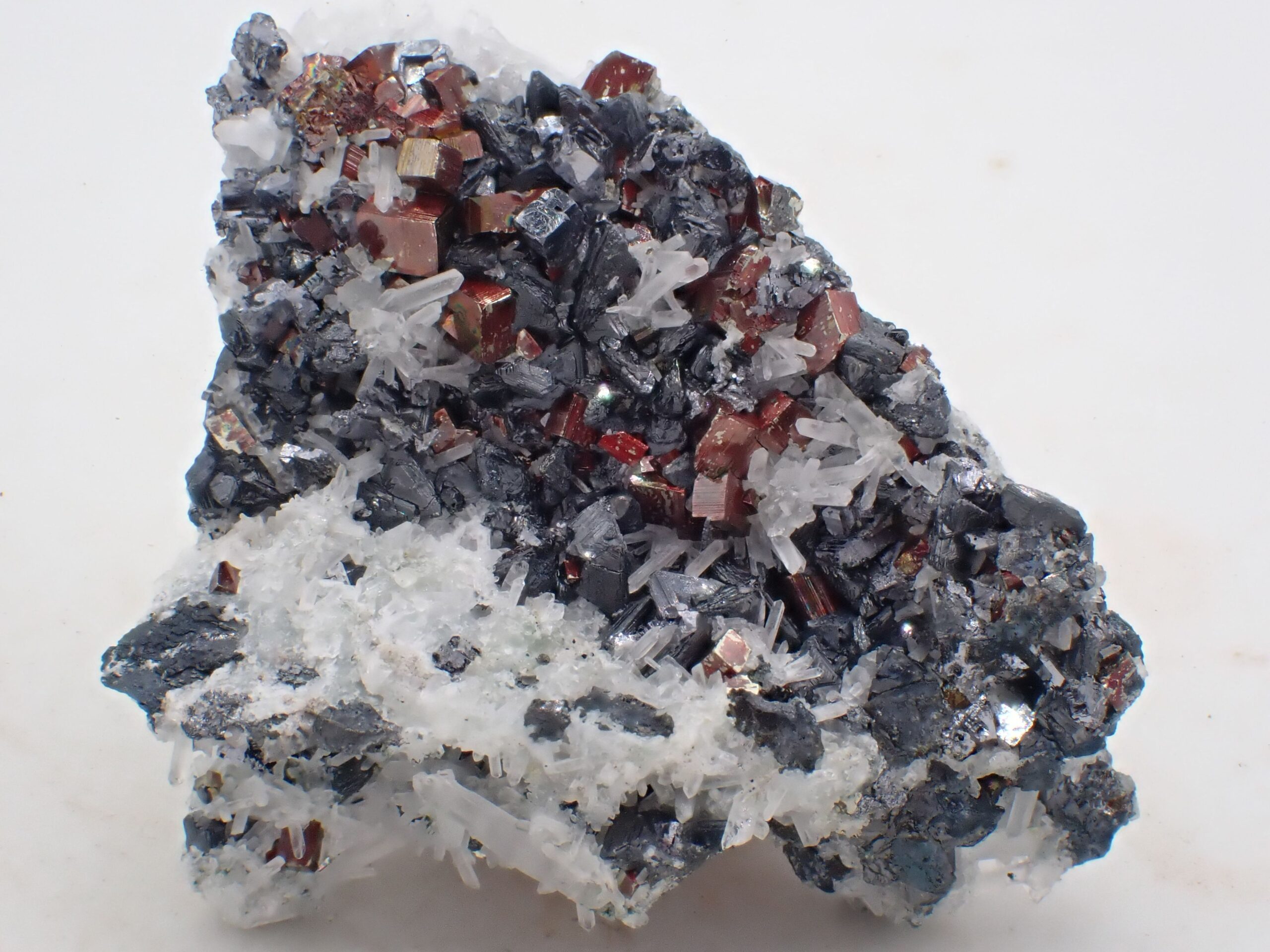 Pyrite dorée rouge & Quartz & Galène , Rhodope Mountains , Bulgarie . référence : pyqg19