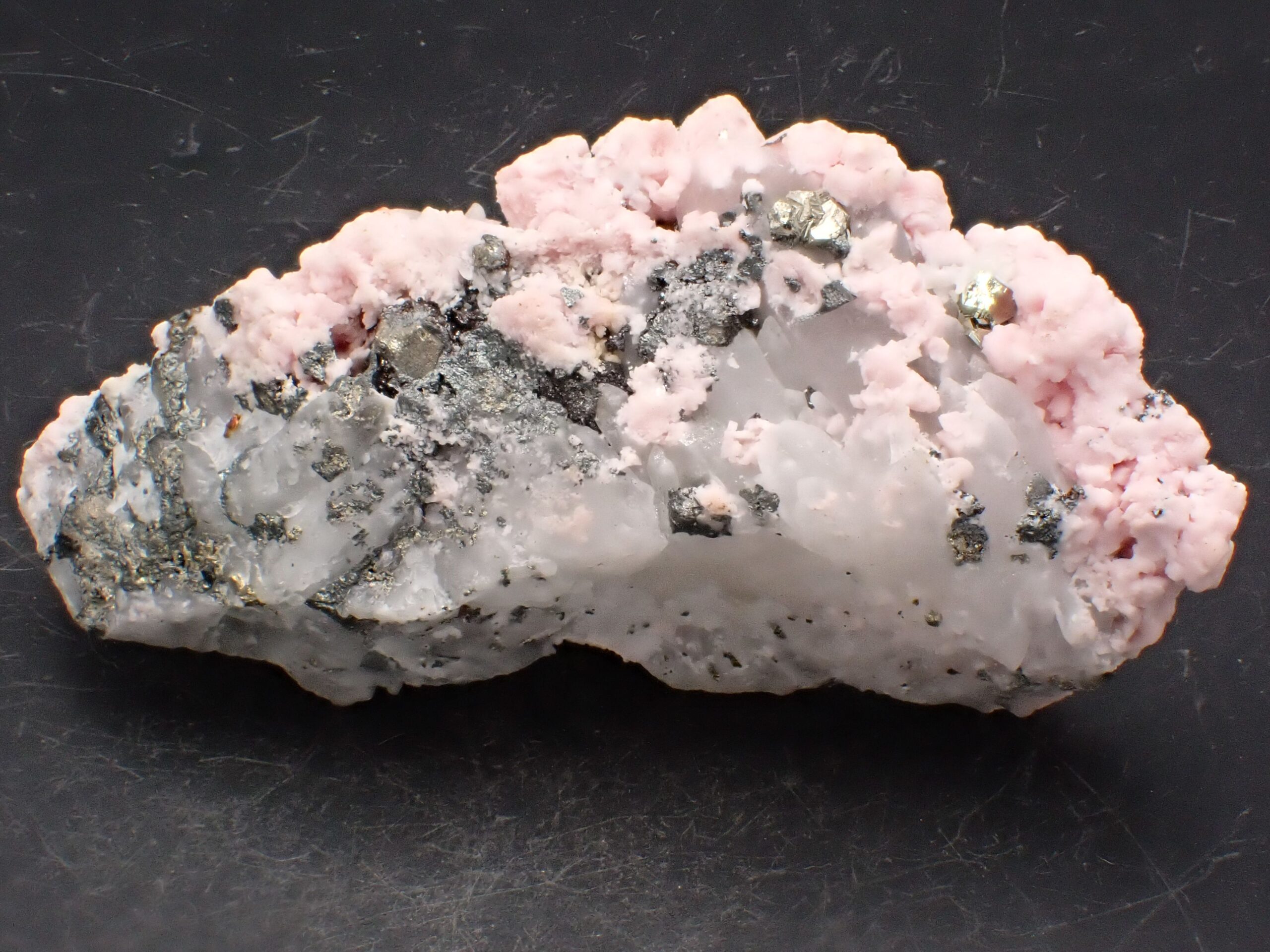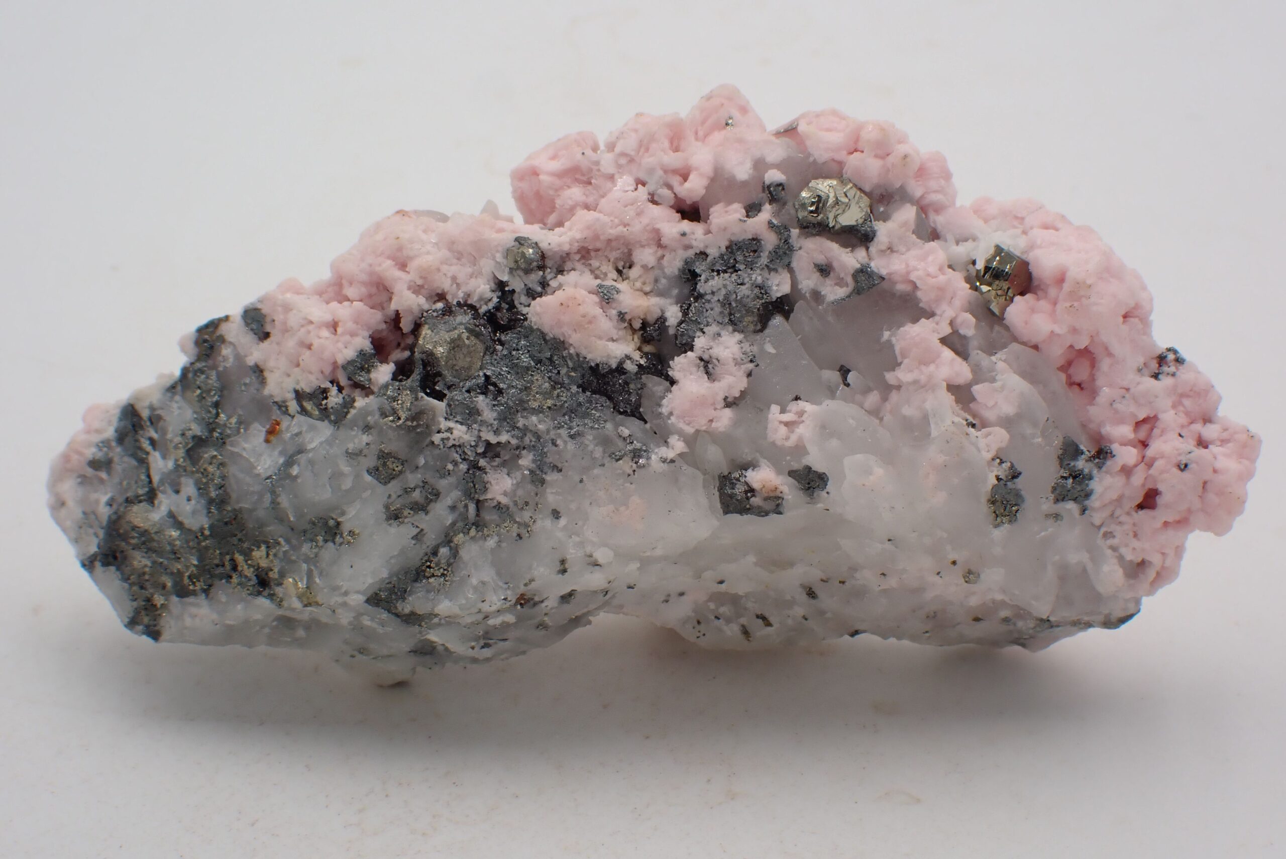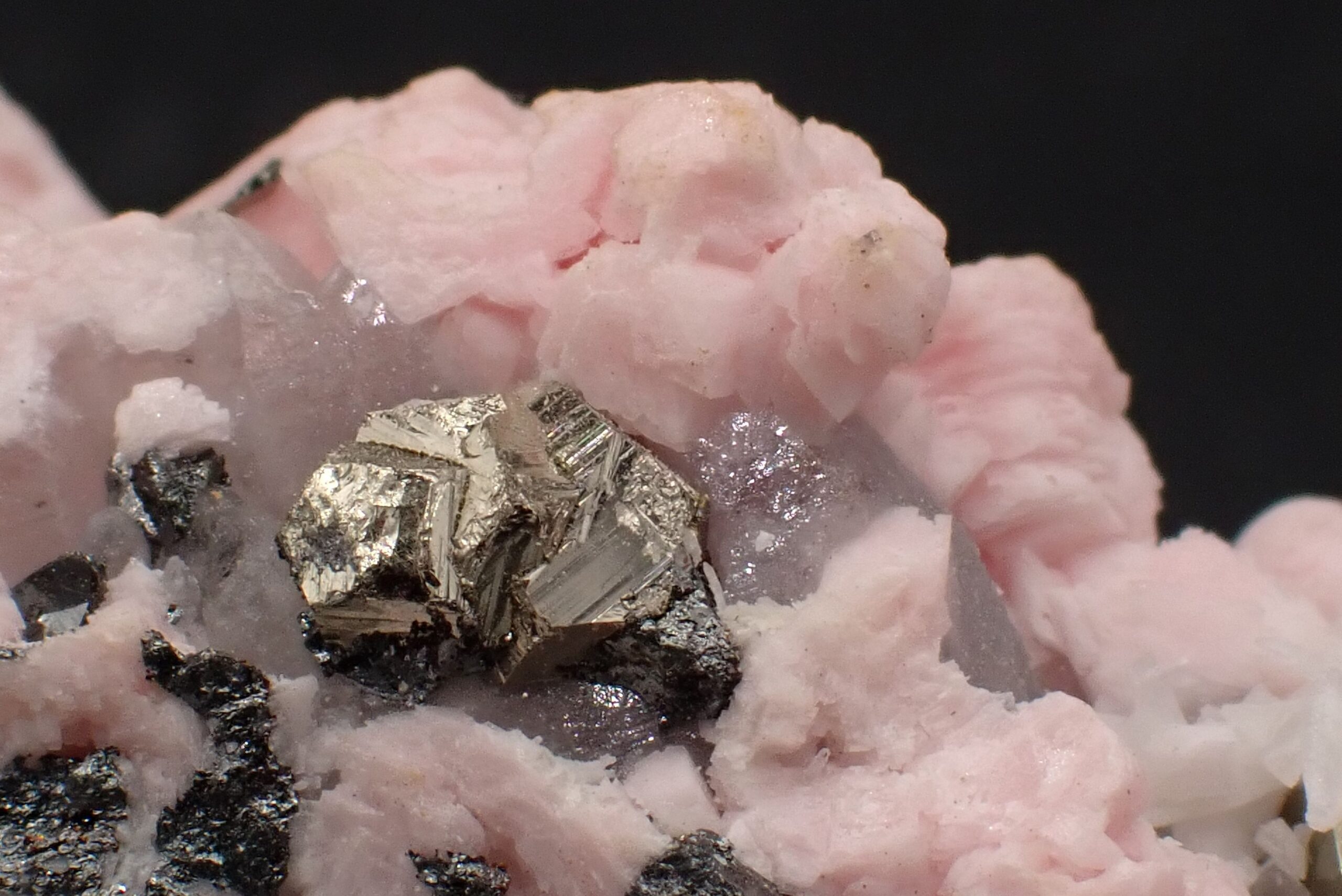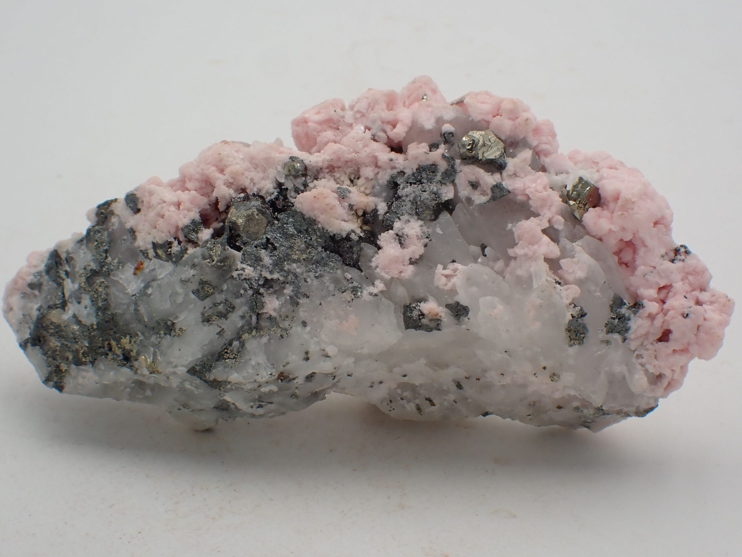 Rhodochrosite & Tétraédrite & Quartz & Pyrite , Pachapaqui , Ancash , Pérou . référence : rhod40