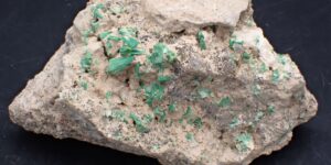 Torbernite (Radioactive , Fluorescence sous UV longs) Mine Margabal , Entraygues-sur-Truyère , Aveyron , France . référence : torb66